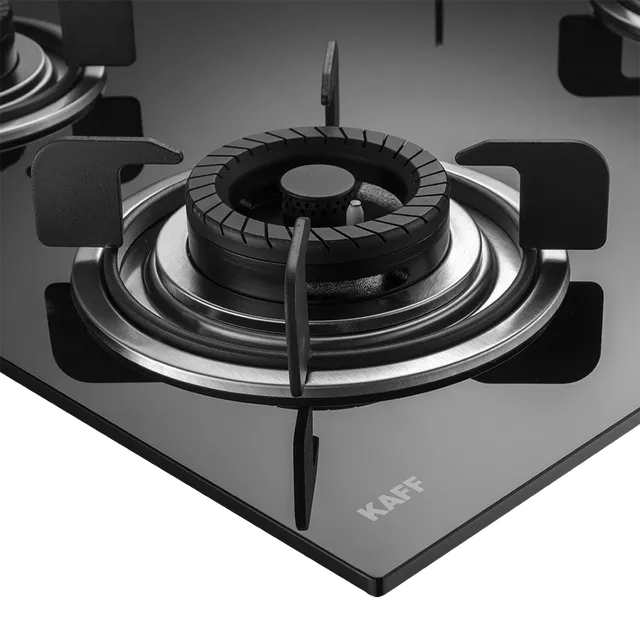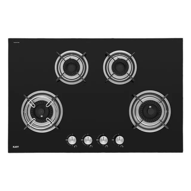 KAFF CRISTA CRH 804 Built-in Hob/Hobtop 4 Burners, Auto Electric Ignition Glass Top, 80 CM, Black Coated Tornado Style Burners, SS Drip Tray, 8 MM Thick Toughened Glass (Black)