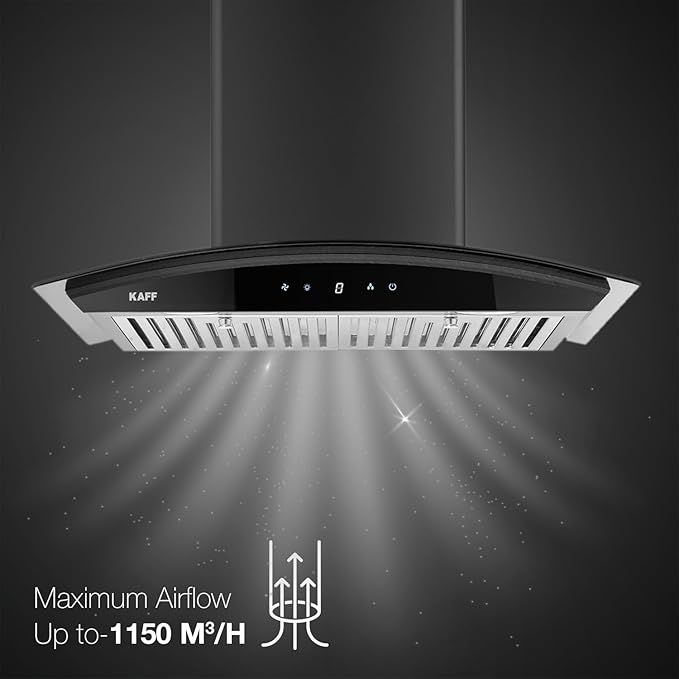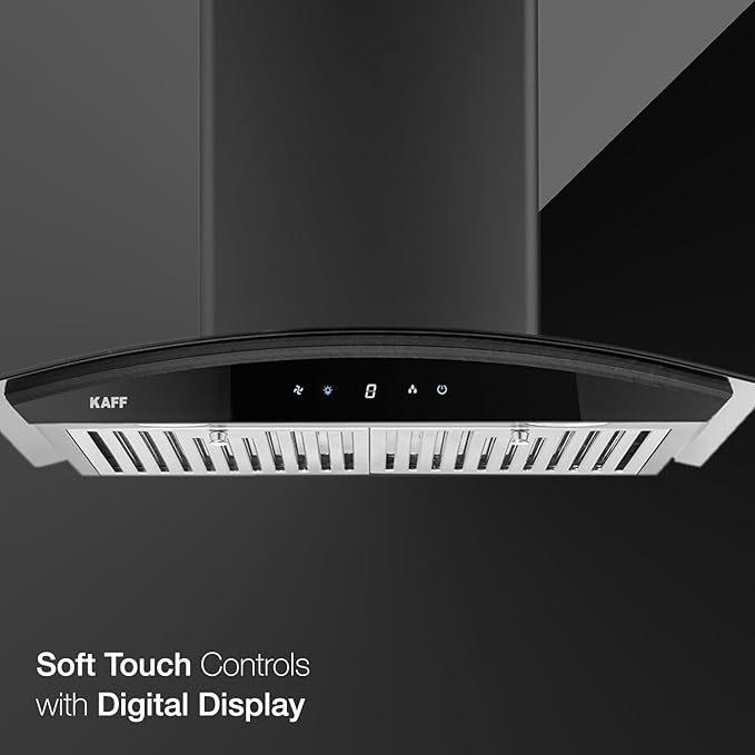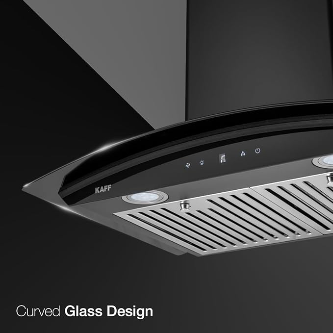 KAFF MILA DHC 60 Heavy Duty Baffle Filter Auto Clean Curved Glass Kitchen Chimney 60 CM with 1150 m3/hr Suction Capacity, Touch Control, Energy Saving Frosted LED Lights, Digital Display (Black)
