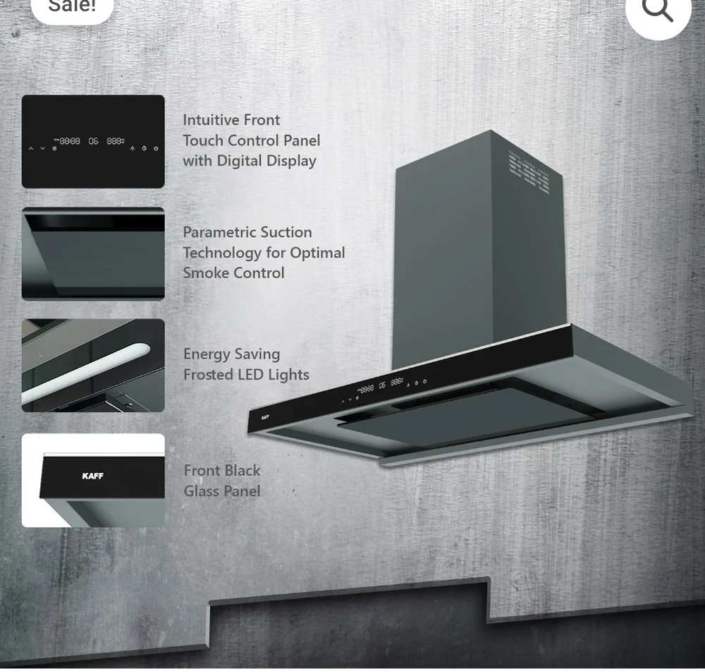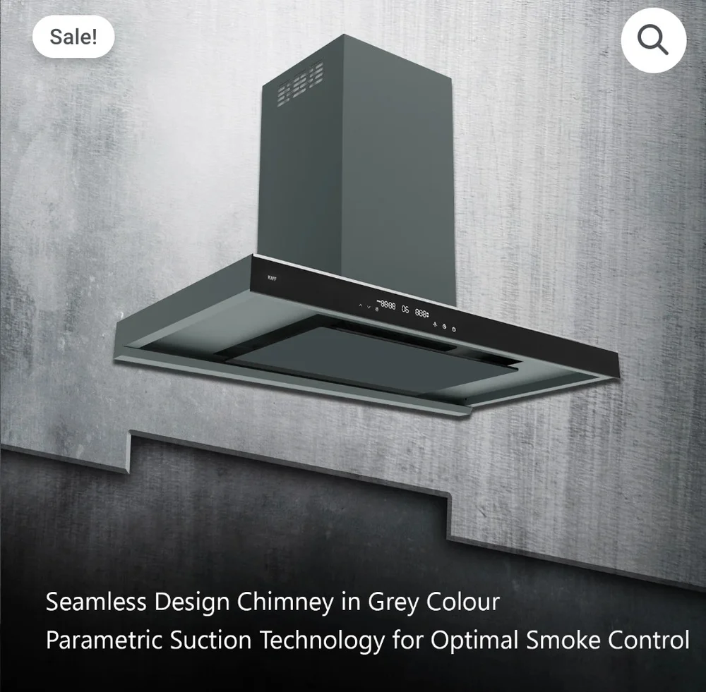 With the KAFF Missoni 90 Chimney, say goodbye to the hassle of filter maintenance. Featuring Filter Less and Dry Heat Auto Clean Technology, this chimney ensures effortless cleaning and maintenance, saving you time and effort while keeping your kitchen environment clean and fresh.